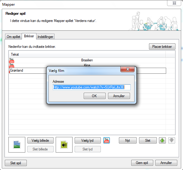 Mulighed for at integrere YouTube videoer. Et skærmbillede af Mappers redigeringsvindue kan ses nedenfor (klik for at forstørre):