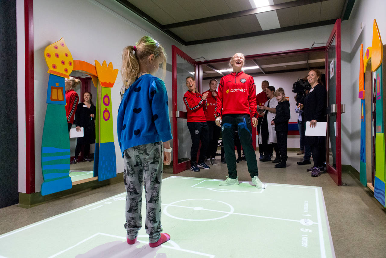 Torsdag var seks spillere fra kvindelandsholdet, som i øjeblikket i Viborg forbereder sig til en VM-kvalifikationskamp mod Ukraine, på besøg på børneafdelingen på Regionshospitalet Viborg.